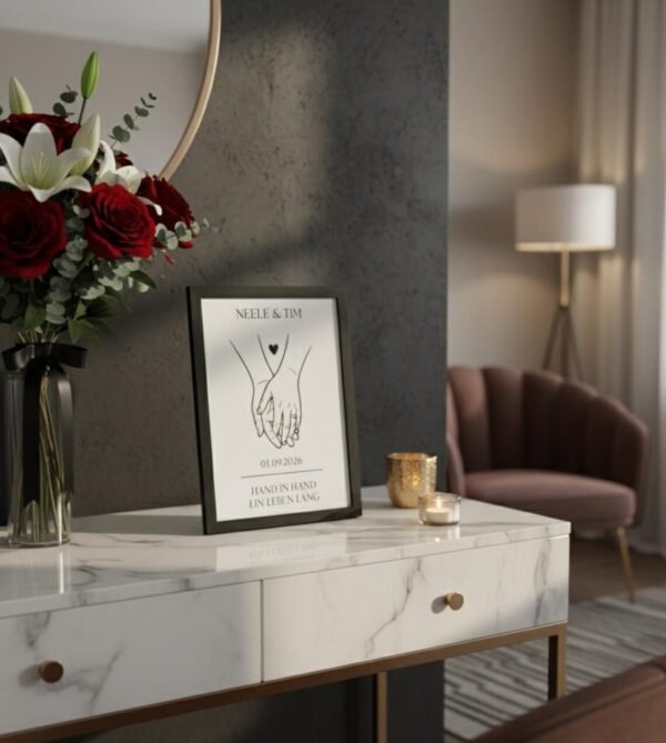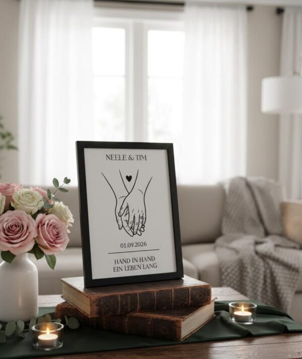 Hochzeitsgeschenk personalisiertes Paarbild „Hand in Hand“ – Datum & Namen – Geschenk zur Hochzeit, Verlobung, Jahrestag